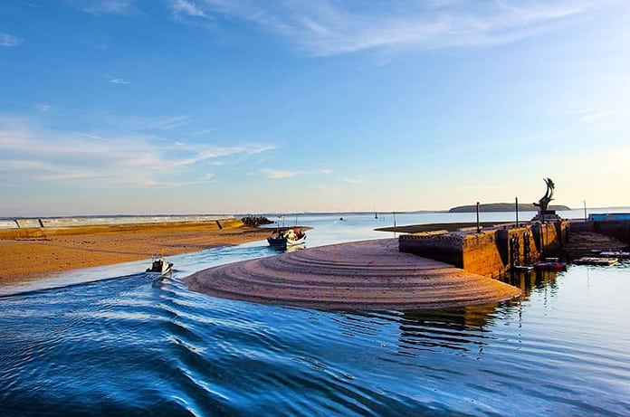 奎壁山摩西分海:奎壁山與赤嶼是玄武岩地質的陸連島地形,海水漲潮時兩地各自獨立遙遙相望,但到了退潮之後,連結本島與赤嶼間的海底便道,就像變魔術般露出水面!日出時,金黃色帶狀步道從海底浮現,把大海一分為二,場景有如出埃及記中摩西渡海的場景,因此每年吸引了許多遊客到訪遊玩。